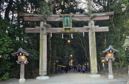 灯篭の光で神秘的な参道を歩いているだけで清々しい気持ちになれます。