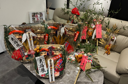 今年も縁起物をたくさん授かることができ、事務所はすっかり縁起物に囲まれた状態に。
