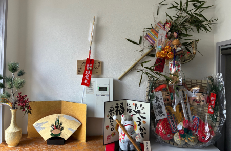 今年も縁起物をたくさん授かることができ、事務所はすっかり縁起物に囲まれた状態に。