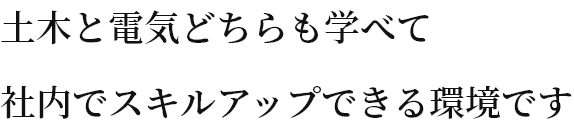 土木工事、電気工事それぞれ異なる段取りになるので、どちらの知識も身につきます。